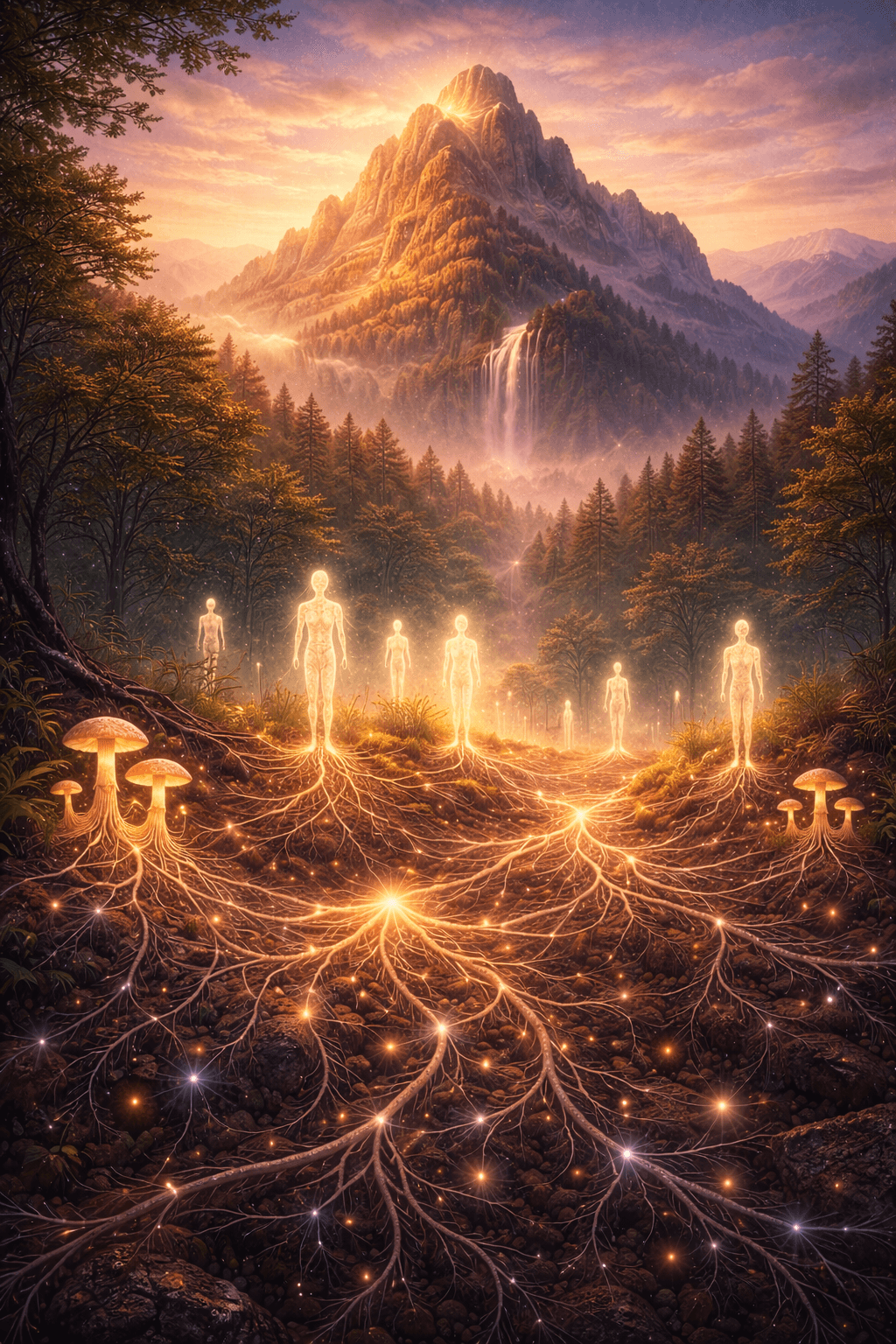 Maybe we are the fruiting bodies of a much larger human network. If that is the case then individuality might be closer to perception than reality, just like the man who believed the mountain stood still because he refused to look deeper into what it was made of. The concept of self begins to feel fragile when you examine it like this. Maybe our “selves” are not as separate as we like to believe. Maybe they simply run deeper than we usually look. The mushroom above the soil is not the organism. It is simply the visible part we initially perceive. The real organism is the network underground. So if that is true in the forest, I cannot help but wonder if something similar is happening with us. Maybe the version of me sitting on the couch drinking lion’s mane tea while Cash stares at me is just the visible part of something much larger. Maybe the reason it is so difficult to answer where the organism begins or ends is because the answer might be the same one the wise man hinted at on the mountain.
